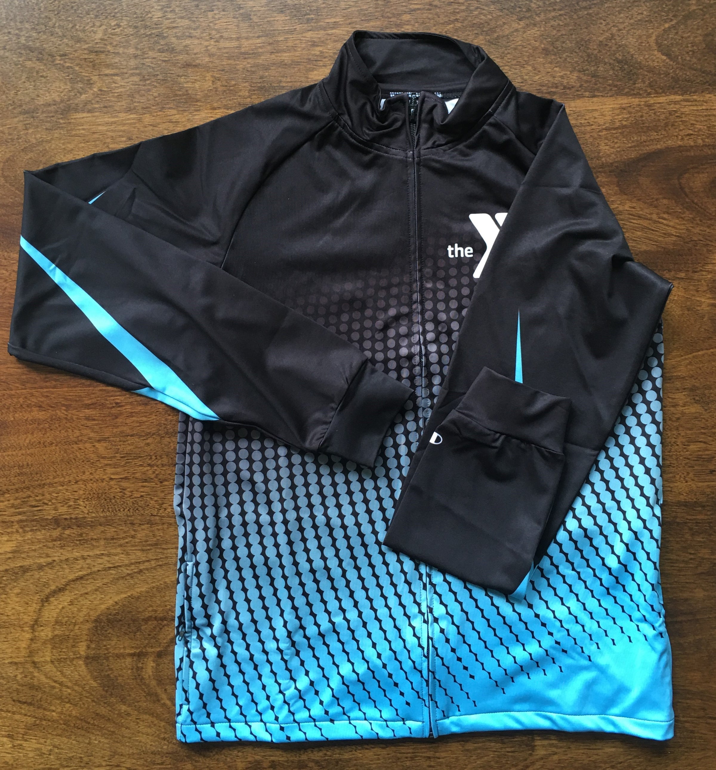UltraFuse brushed polyester/spandex warm-up jacket with zippered pockets. The design is printed into the fabric.